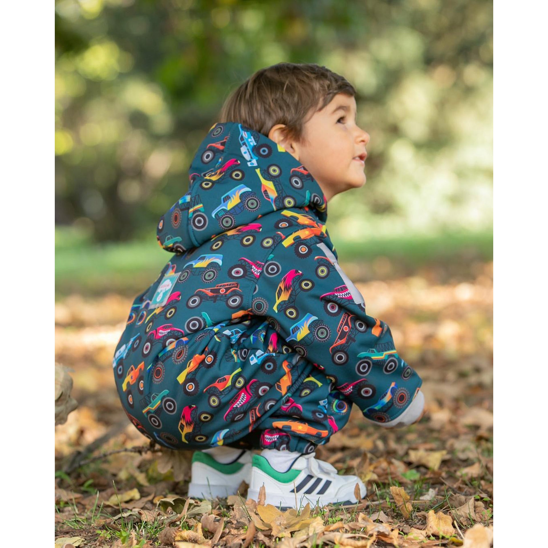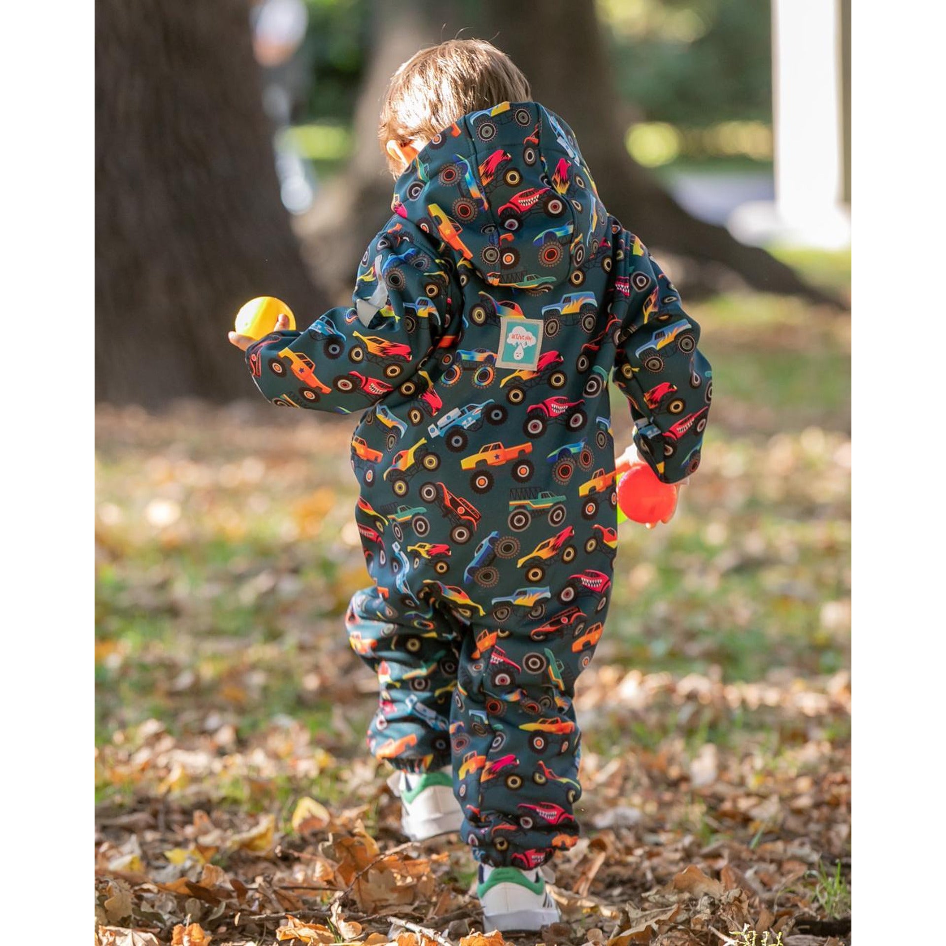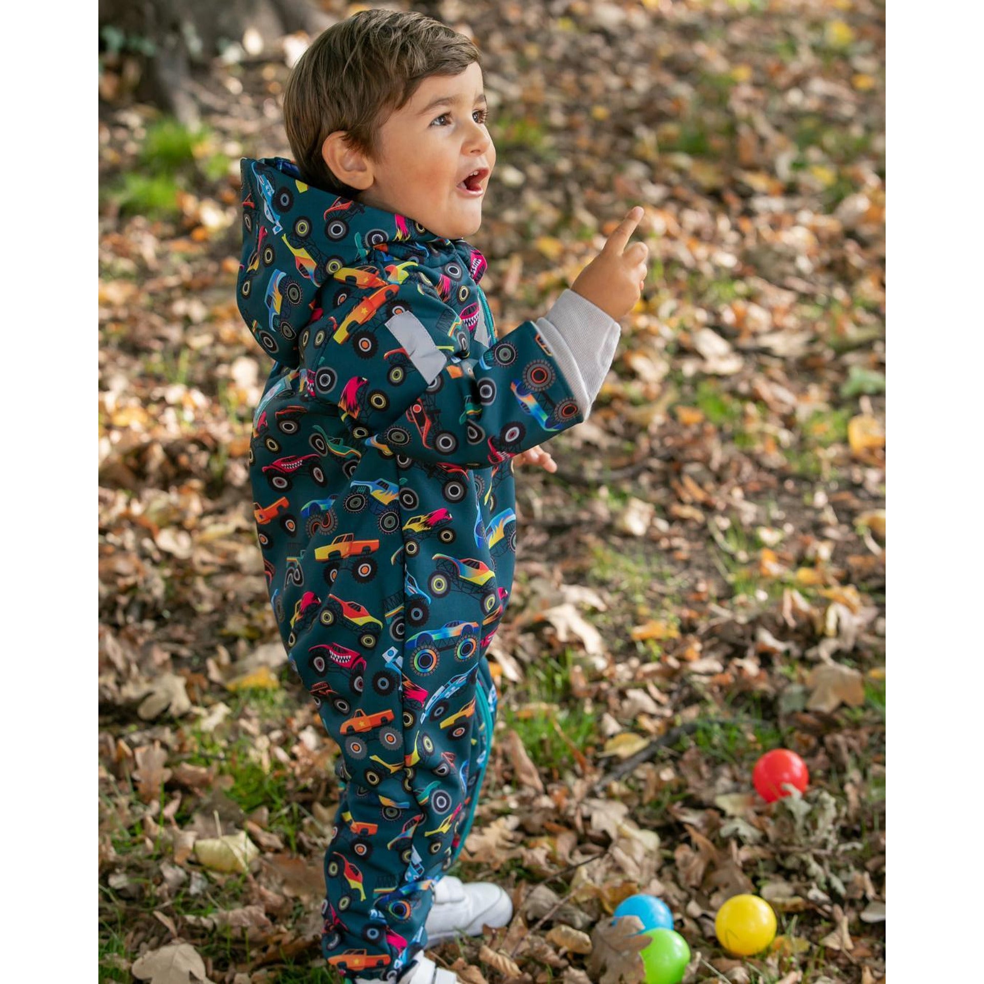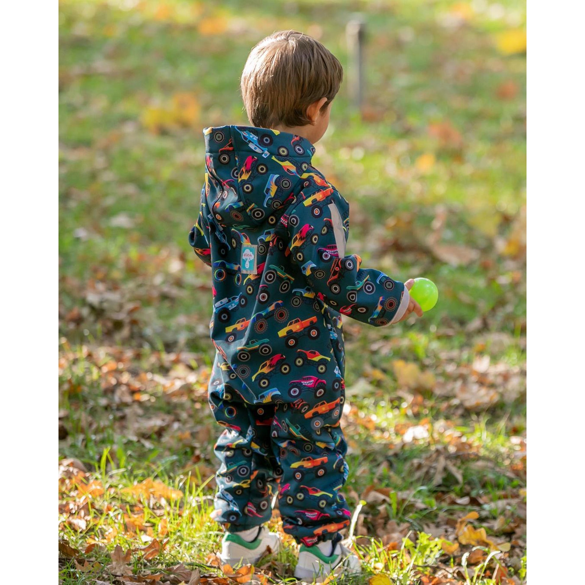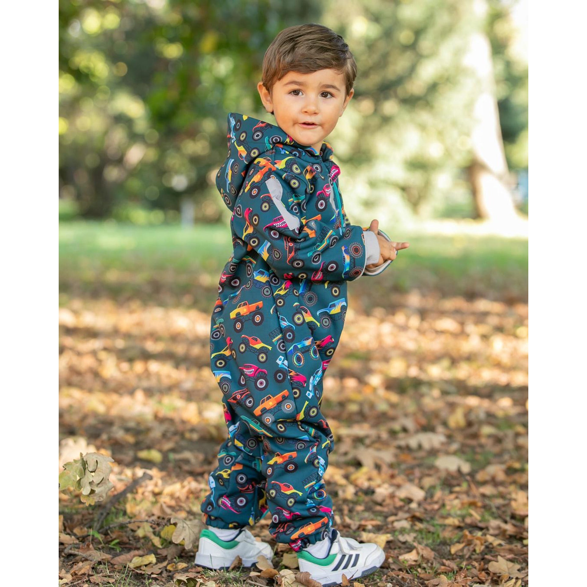 Удобен гащеризон от софтшел (коли) - от дишаща и гъвкава материя, осигурява свобода на движението. Водоустойчив до 5000мм воден стълб, непромокаемо при лек дъжд и сняг, устойчиво на джапане в локви, но не и седене в локви. В това е уникалността на материята - балансира водоустойчивост и способност да диша.